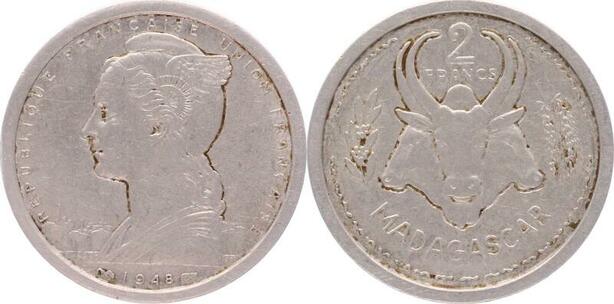 O196 Madagascar 2 Francs Marianne 1948 -> Make offer