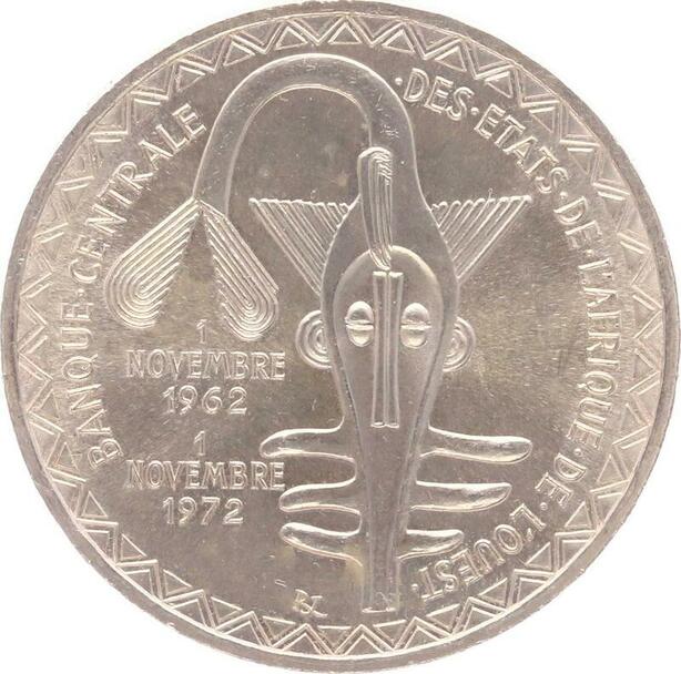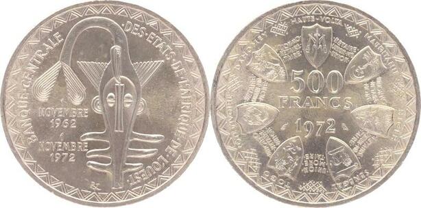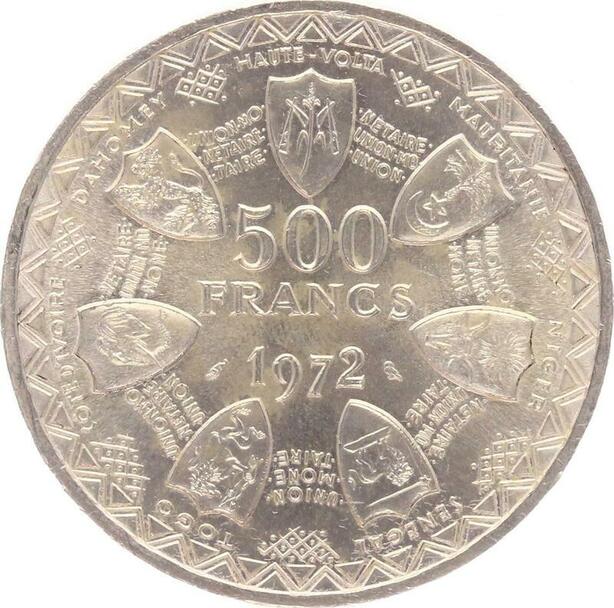 O232 Afrique de l'Ouest 500 Francs Union monétaire 1972 Argent Silver FDC