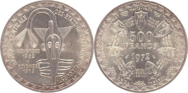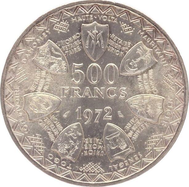 O233 Afrique de l'Ouest 500 Francs Union monétaire 1972 Argent Silver FDC