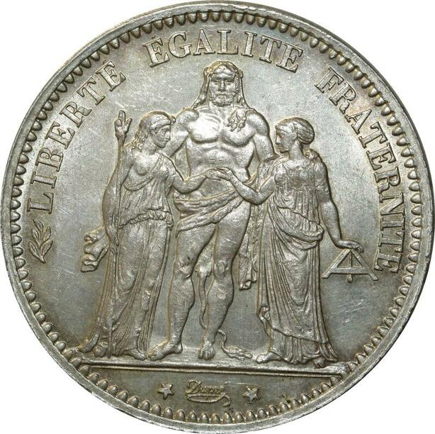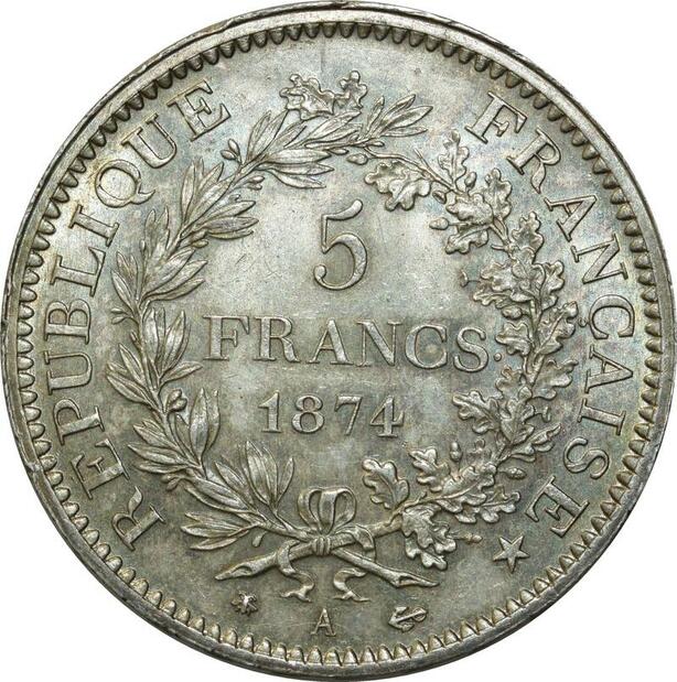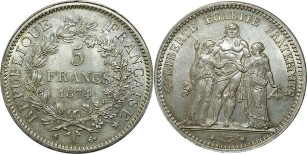 O257 France Rare 5 Francs Hercule Dupré 1874 A Paris Argent Silver Splendide