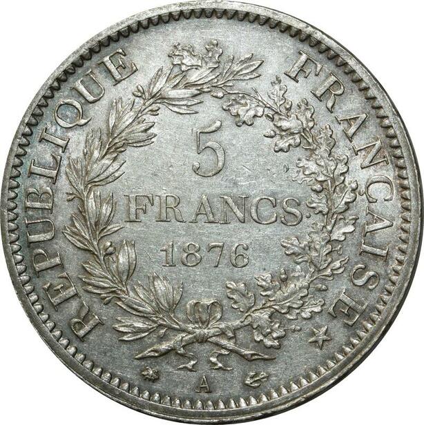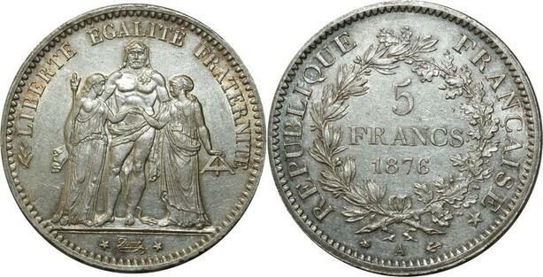 O259 France 5 Francs Hercule Dupré 1876 A Paris Argent Silver Superbe -> Make offer