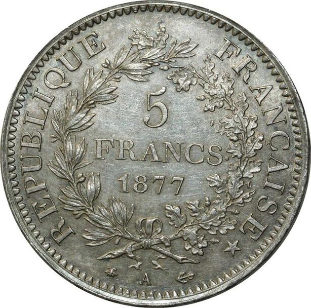 O260 France Rare Rare 5 Francs Hercule Dupré 1877 A Paris Argent Silver Superbe +++