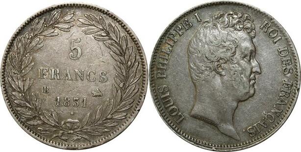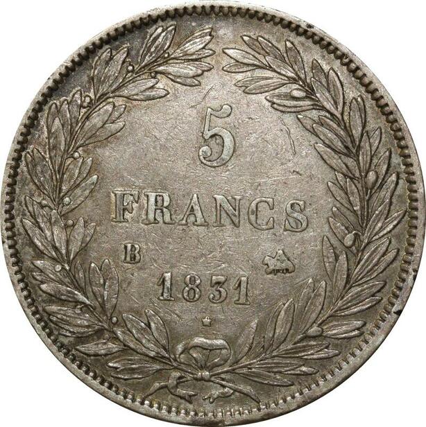 O263 France 5 Francs Louis-Philippe Tiolier 1831 B Rouen Tr Creux Argent Silver