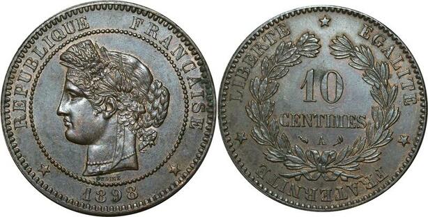 O295 France Rare 10 Centimes Cérès 1898 A Paris SUP Splendide -> Make offer