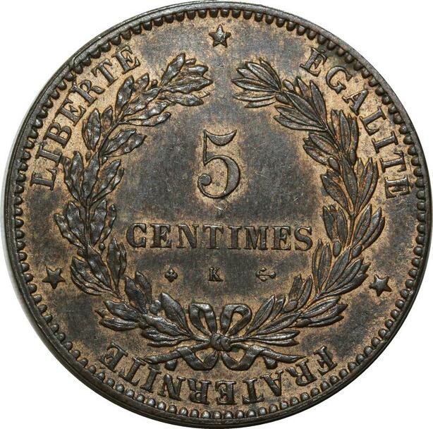 O296 France Rare 5 Centimes Cérès 1872 K Bordeaux Splendide -> Make offer