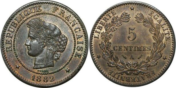 O299 France Rare 5 Centimes Cérès 1882 A Paris Splendide +++ -> Make offer