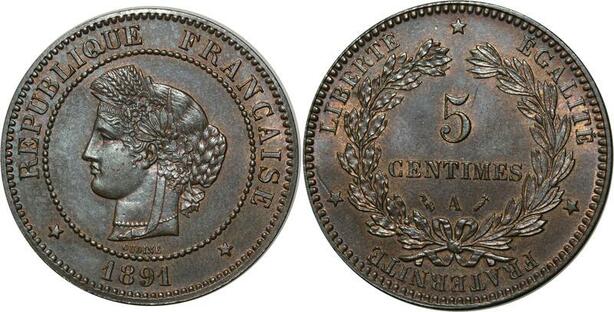 O304 France Rare 5 Centimes Cérès 1891 A Paris FDC !!!!! -> Make offer