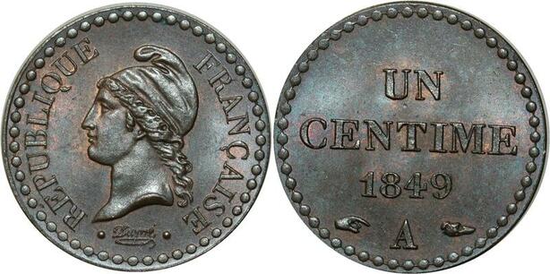 O311 France Rare 1 Centime Dupré République 1849 A Paris FDC !!! Un bijou