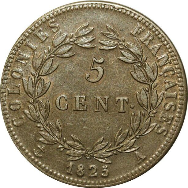 O326 Guadeloupe Rare Colonies 5 Centimes Charles X 1825 A Paris SUP SPL