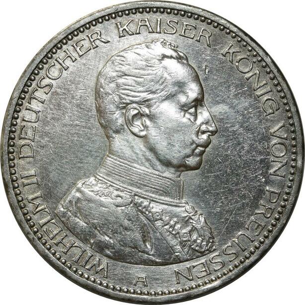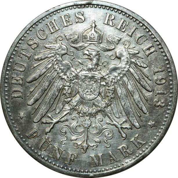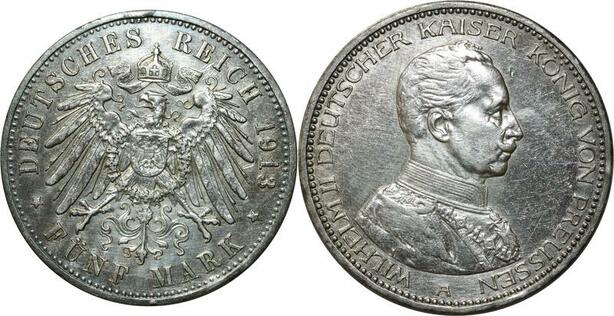 O339 Germany 5 Marks Wilhelm II 1913 Argent Silver A Berlin AU !!