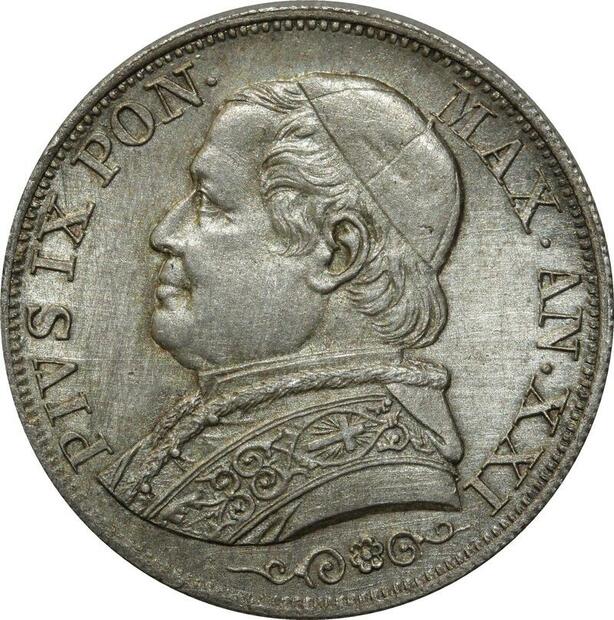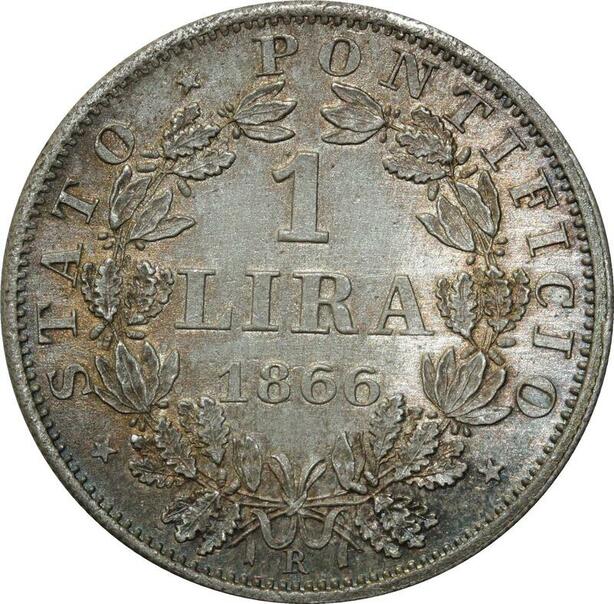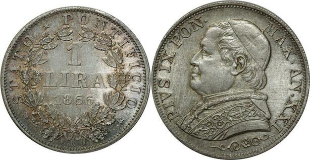 O342 Scarce Vatican 1 Lire Pivx IX An XXI 1866 Argent Silver Rome UNC !!