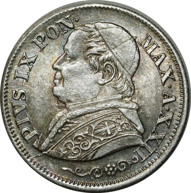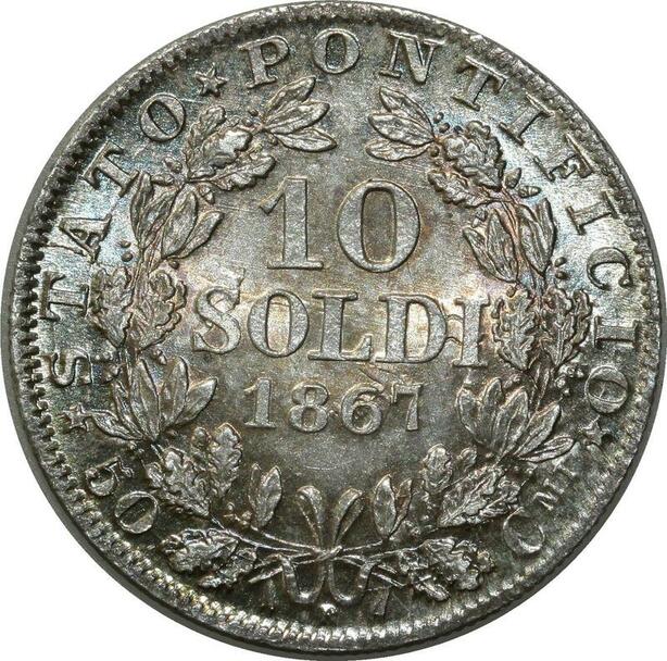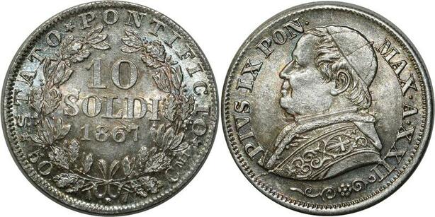O349 Vatican 10 Soldi Pivs IX 1867 R Rome Argent Silver MS !!! BU !!! 66 67