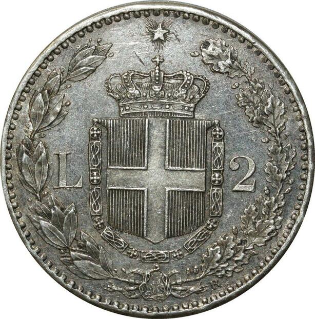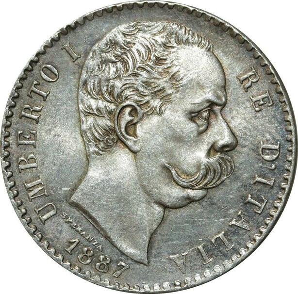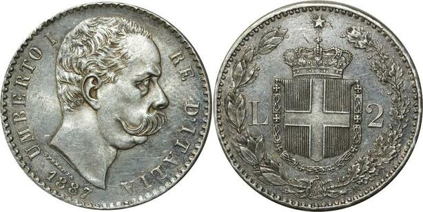 O354 Rare Italy 2 Lire Umberto I 1887 Argent Silver R Roma UNC !!!