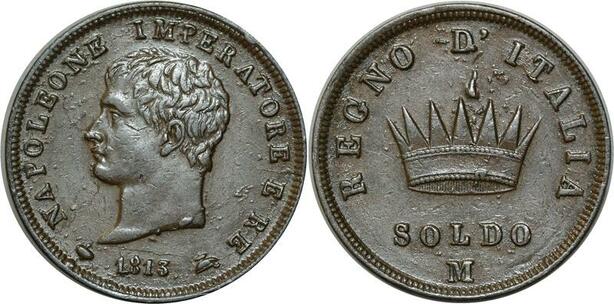 O356 Rare Italy 1 Soldo Napoléon 1813 M Milan AU SUP > Make Offer