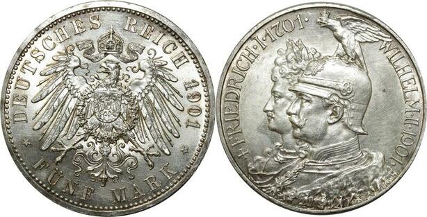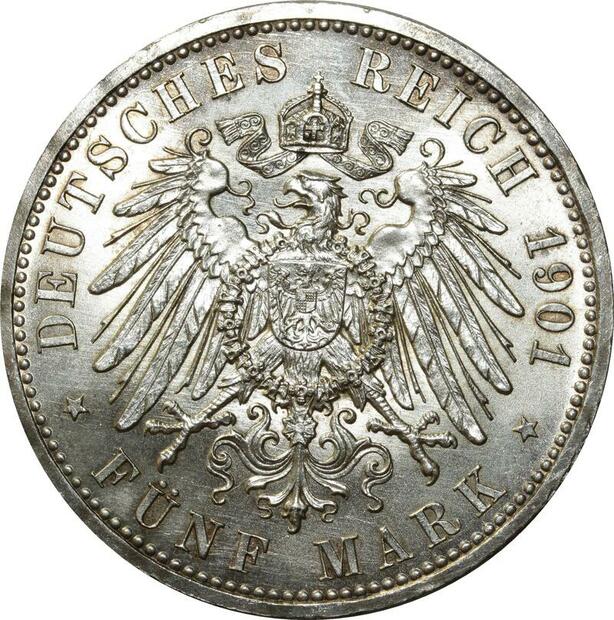 O370 Germany 5 Marks Friedrich Wilhelm II 1901 Argent Silver D Munich UNC !!!