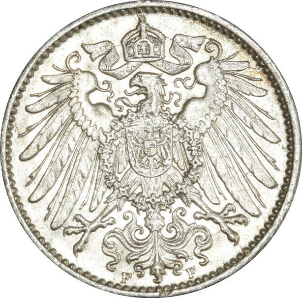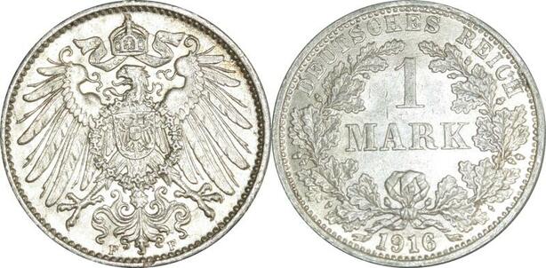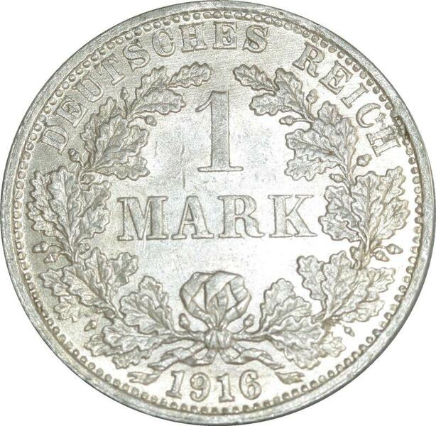 O377 Rare Germany 1 Mark Wilhelm II 1916 F Stuttgart Argent Silver AU UNC