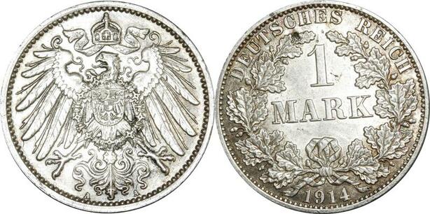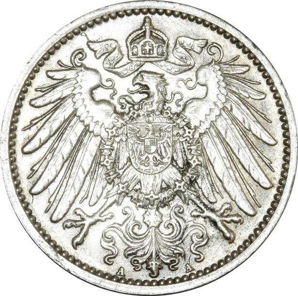O380 Germany 1 Mark Wilhelm II 1914 A Berlin Argent Silver AU