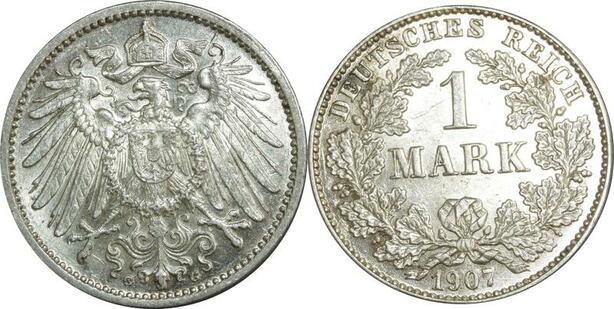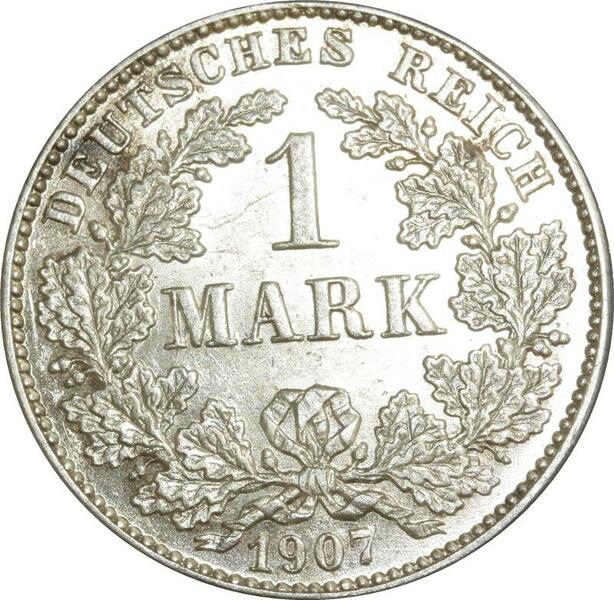 O387 Germany 1 Mark Wilhelm II 1907 G Karlsruhe Argent Silver UNC