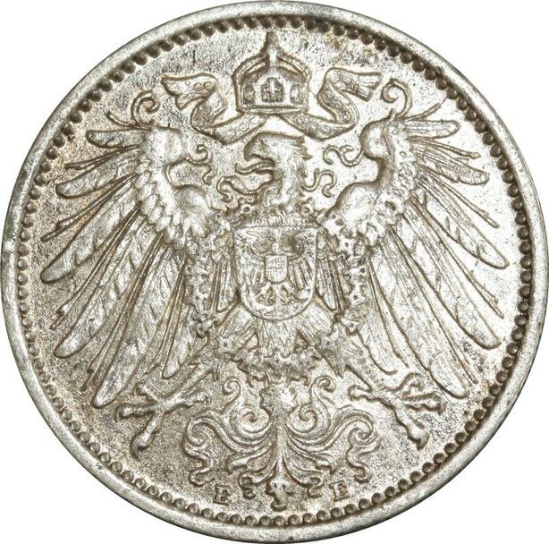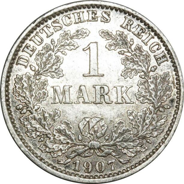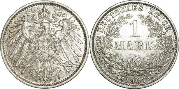 O394 Germany 1 Mark Wilhelm II 1907 E Muldenhütten Argent Silver