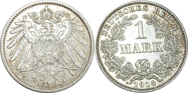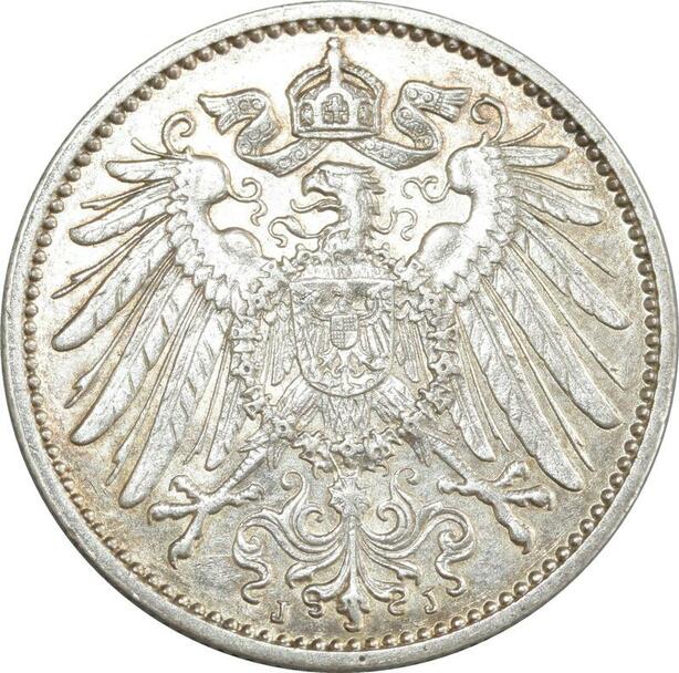 O397 Germany 1 Mark Wilhelm II 1914 J Hambourg Argent Silver