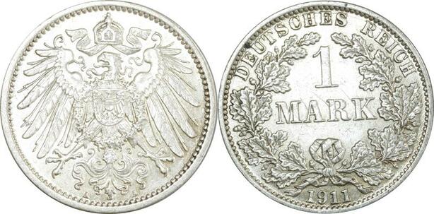 O400 Germany 1 Mark Wilhelm II 1911 A Berlin Argent Silver