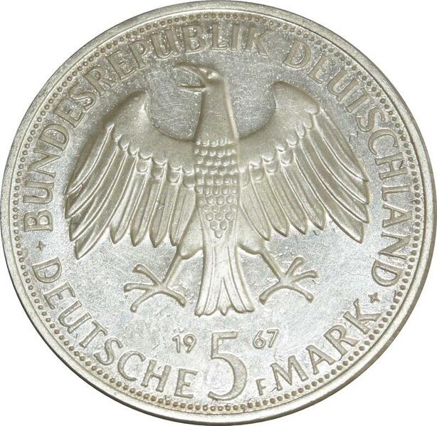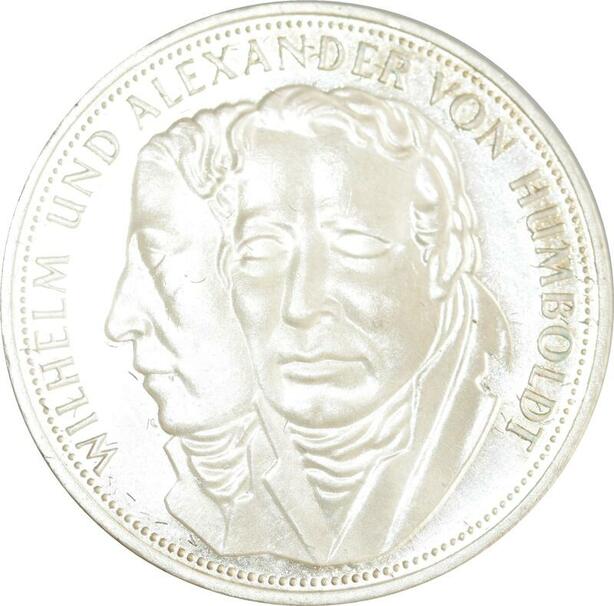 O419 Germany 5 Deutsche Mark Wilhelm Alexander Humboldt 1967 F Stuttgart Silver PP