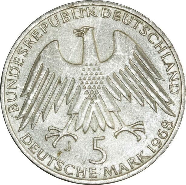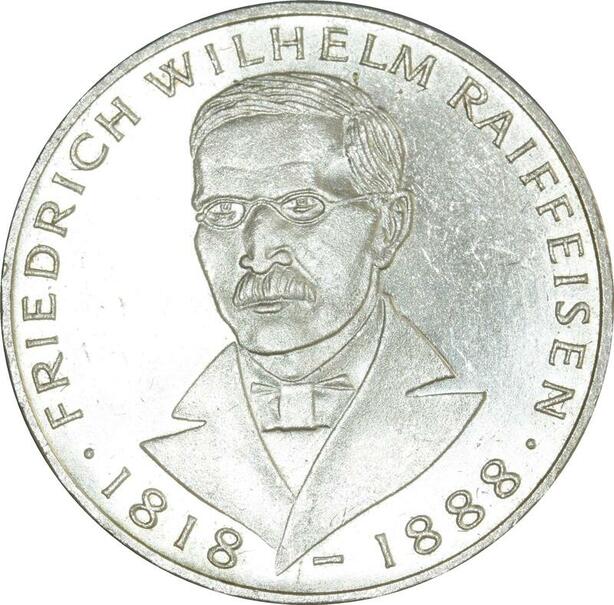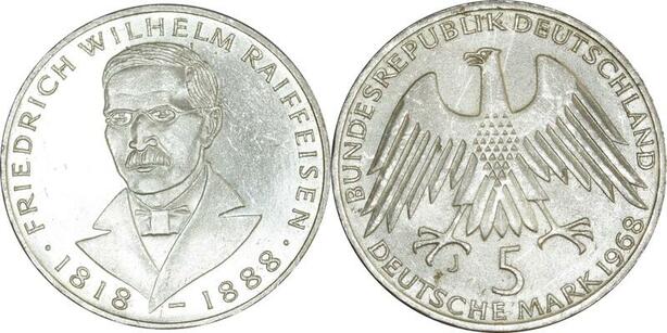 O424 Germany 5 Deutsche Mark Wilhelm Raiffeisen 1968 J Hambourg Silver SUP