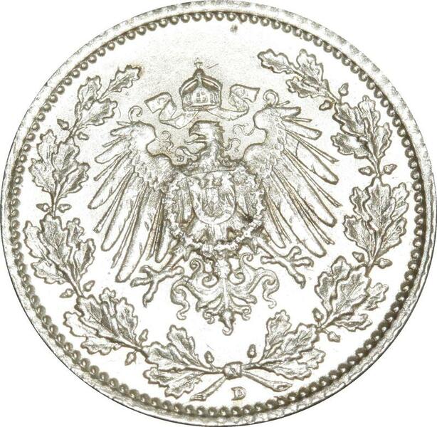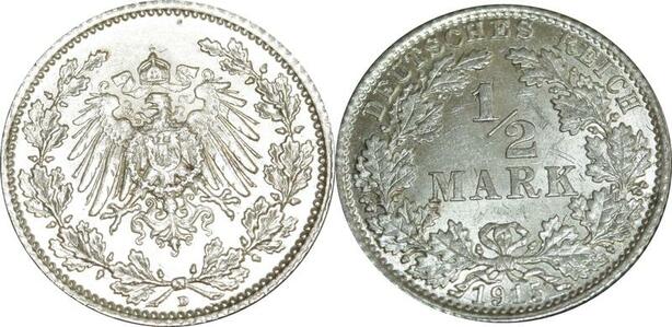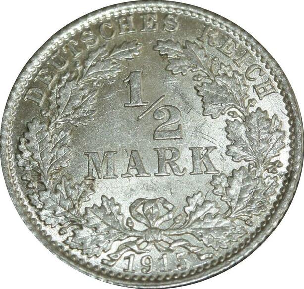 O445 Germany 1/2 Mark Wilhelm II 1915 D Munich Argent Silver FDC