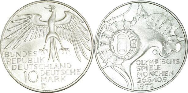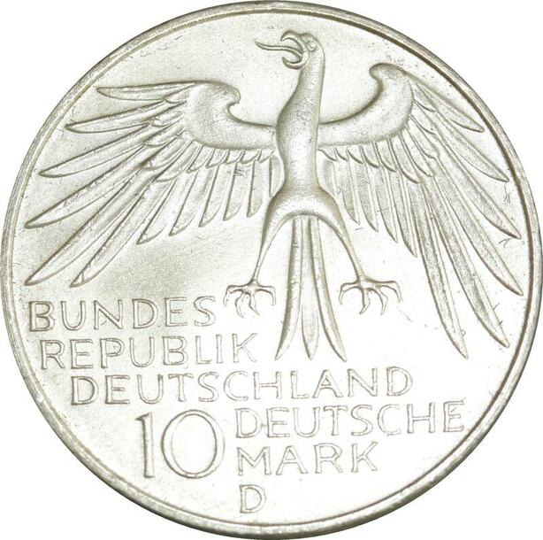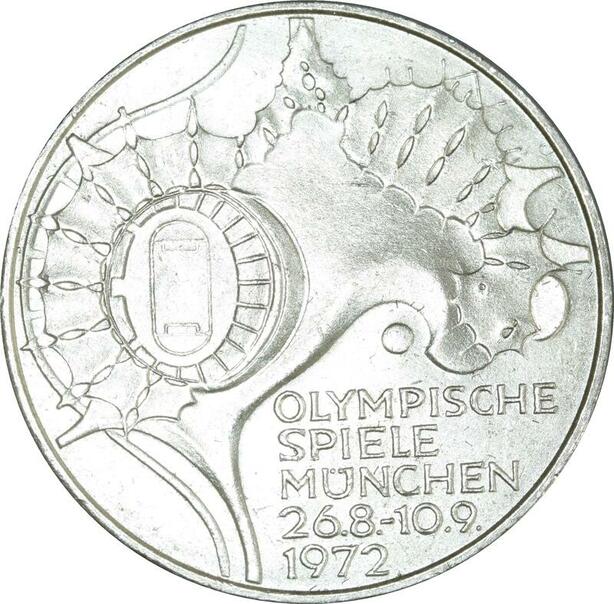 O454 Germany 10 Deutsche Mark Stade Olympique Münich 1972 D Munich Silver