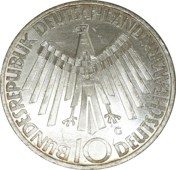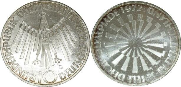 O460 Germany 10 Deutsche Mark JO Munich 1972 G Karlsruhe Argent Silver PP PF