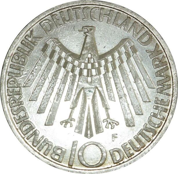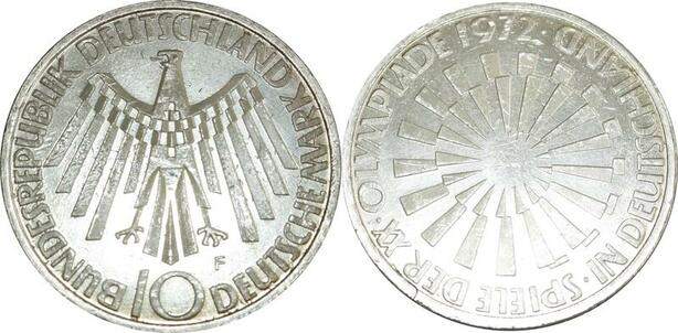 O463 Germany 10 Deutsche Mark JO Munich 1972 F Stuttgart Argent Silver PP PF
