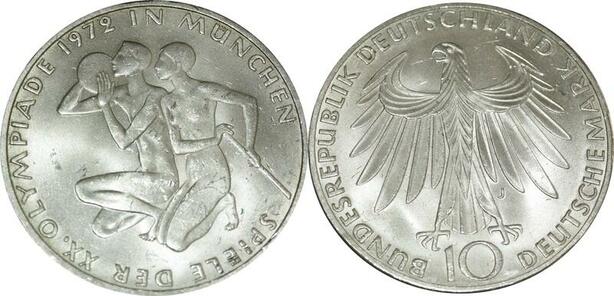 O472 Germany 10 Deutsche Mark JO Münich 1972 J Hambourg Silver UNC