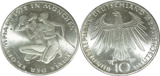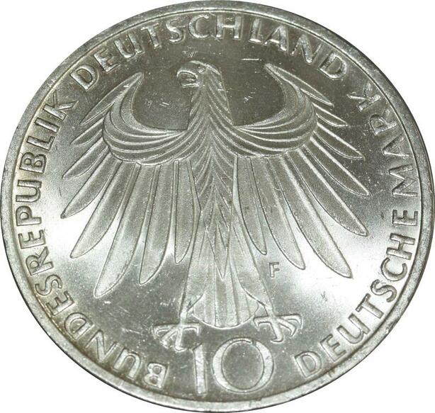 O474 Germany 10 Deutsche Mark JO Münich 1972 F Stuttgart Silver UNC