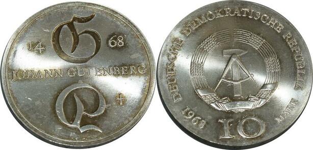 O477 Germany 10 Marks Johann Gutenberg 1968 Argent Silver FDC