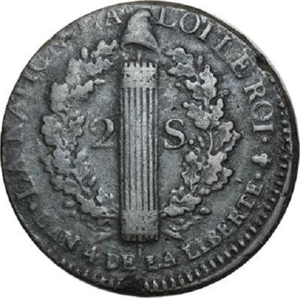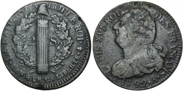 O513 France Constitution 2 Sols François IV 1792 A Paris
