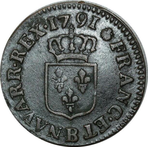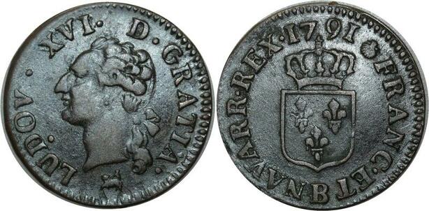 O515 France Rare Liard Louis XVI 1791 B Rouen 2nd semestre ->FO