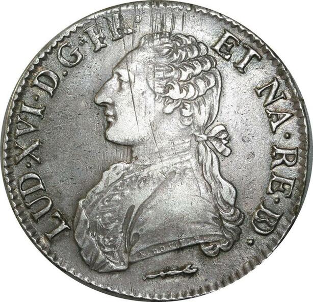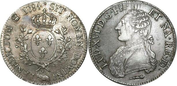 O527 France Rare Ecu Louis XVI branches d'olivier 1784 Pau TTB++ Argent