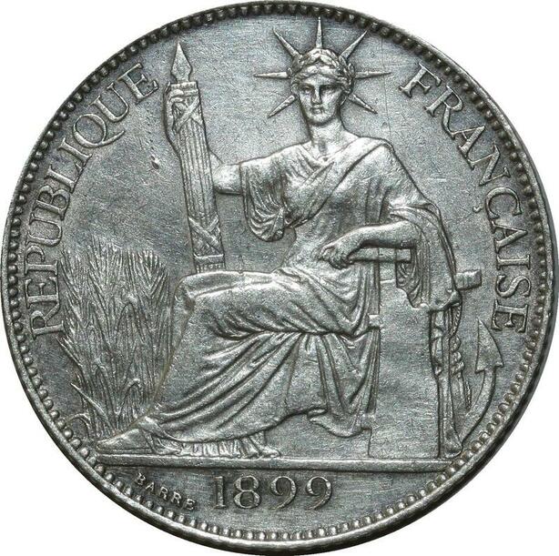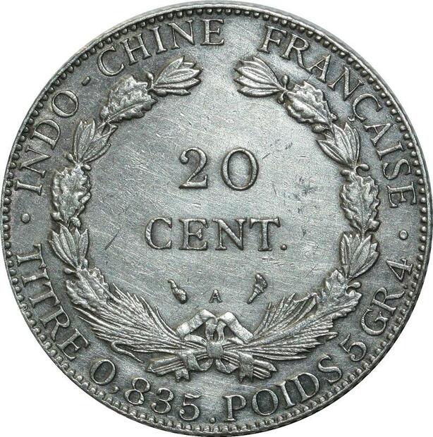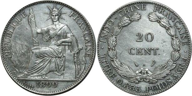 O575 Indochina French Indochina 20 Cents 1899 A Paris Argent Silver AU
