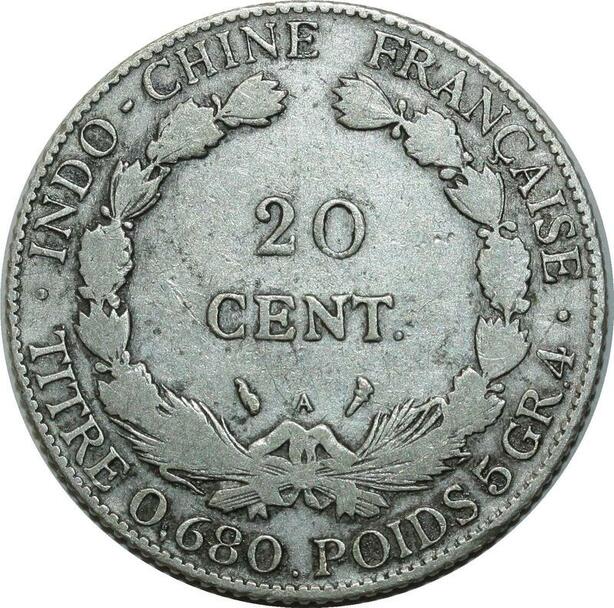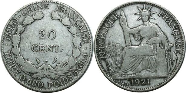 O577 Indochina French Indochina 20 Cents 1921 A Paris Argent Silver