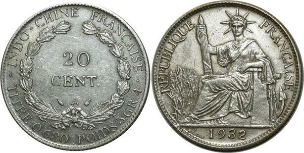 O591 Fake Indochina French Indochina 20 Cents 1932 A Paris Argent Silver