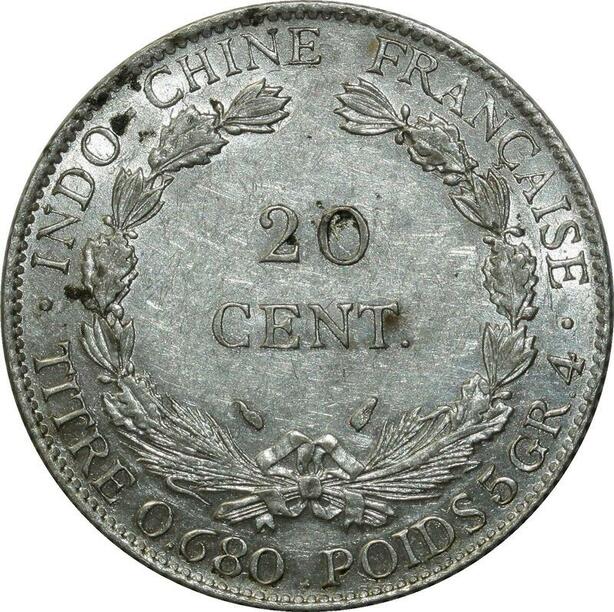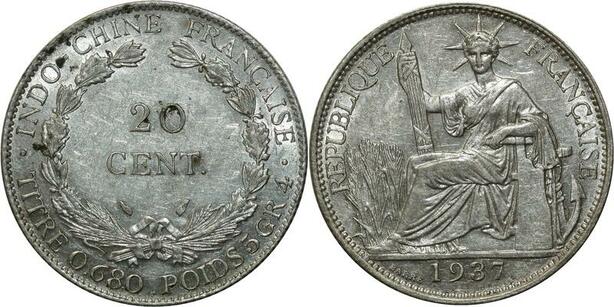 O595 Indochina French Indochina 20 Cents 1937 Argent Silver FDC