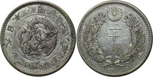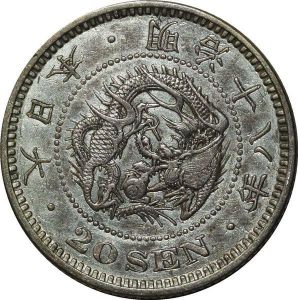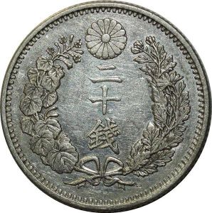 O614 Japon 20 Sen Meiji 1885 Year 18 Argent Silver