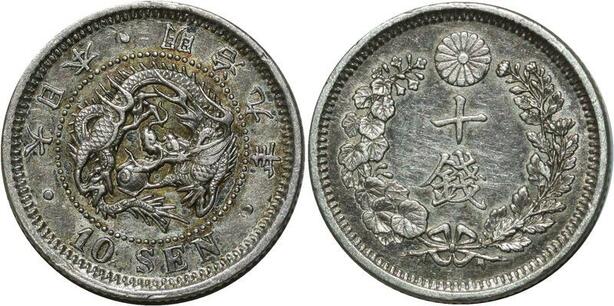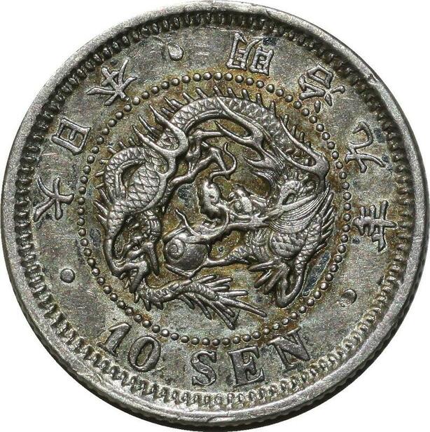 O617 Japon 10 sen Meiji 1876 Argent Silver UNC
