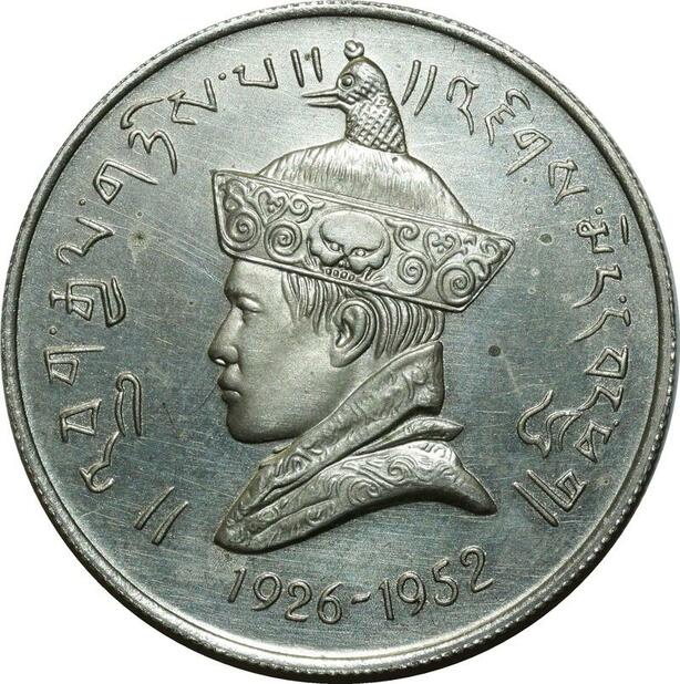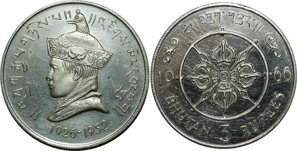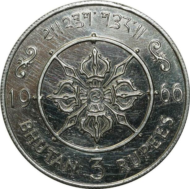 O621 Bhoutan 3 Rupees Jigme Wangchuk Trône 1966