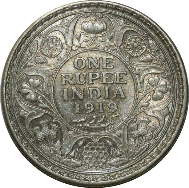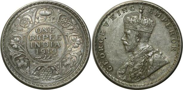 O633 Brtish India One Roupee George V 1919 Argent Silver UNC
