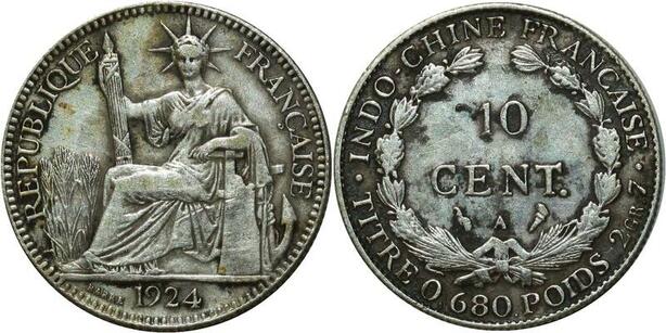 O648 Indochina 10 Cents 1924 A Paris Argent Silver