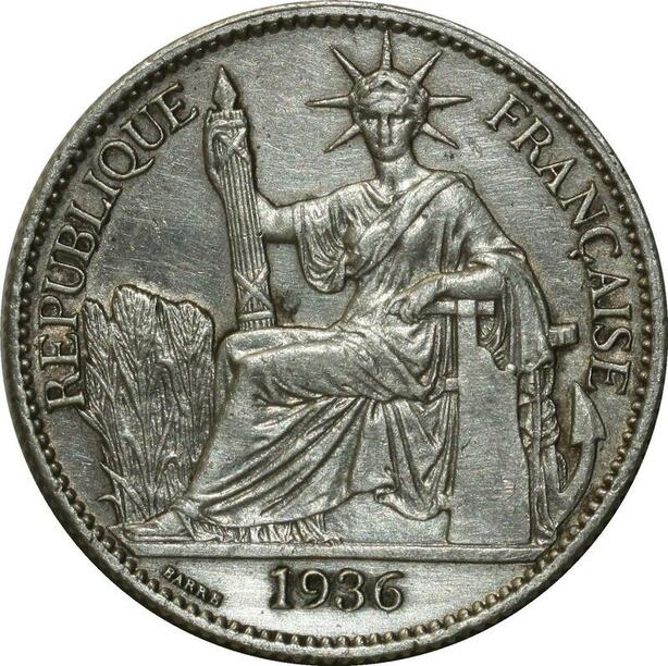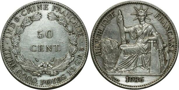 O667 Indochina 50 Cents 1936 Argent Silver AU