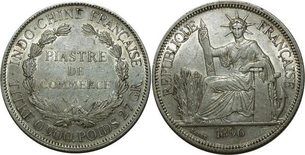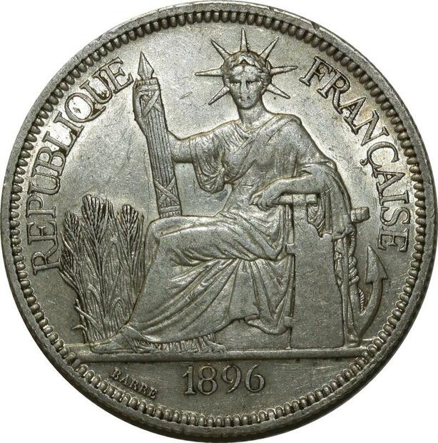 O671 Scarce Indochina 1 Piastre 1896 A Paris Argent Silver XF to AU !!!