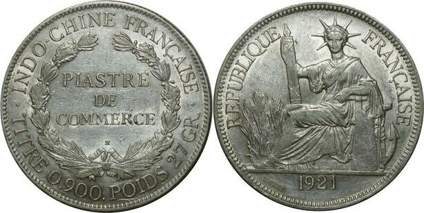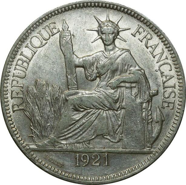 O679 Scarce Indochina 1 Piastre 1921 H Argent Silver AU !!!!