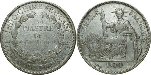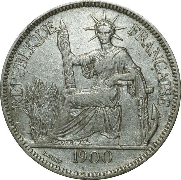 O683 Indochina 1 Piastre 1900 A Paris Argent Silver XF